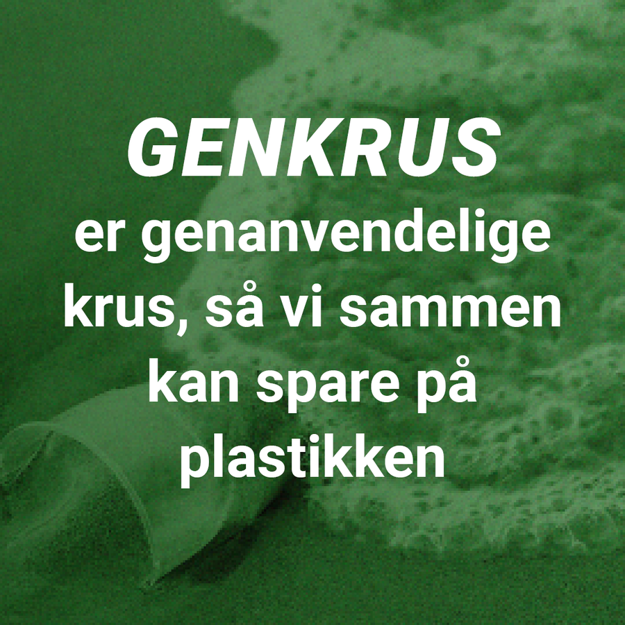 I næsten 20 år har vores gulve flydt med engangsplastic efter de større arrangmenter. Det er slut nu, og vi er gået i en mere miljøvenlig retning. Med Genkrus har vi introduceret vaskbare krus i genbrugsplast.