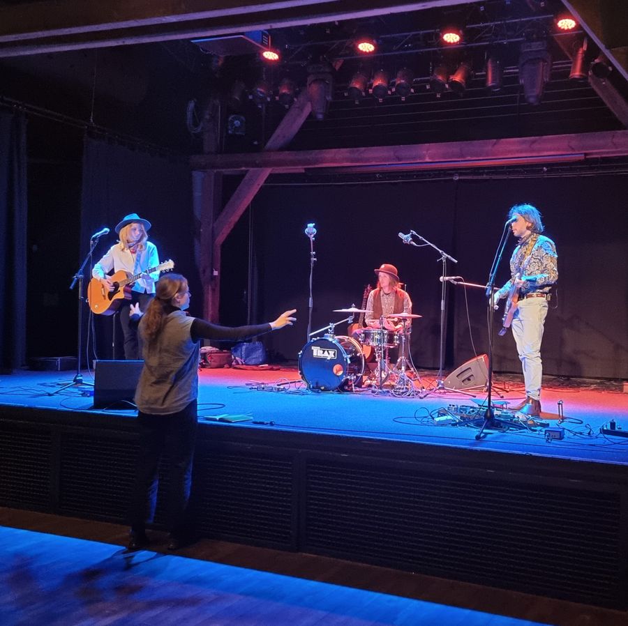 In November 2023, Godset hosted stage coach Sofie Kallan. She was there to assist two local bands - Mica Lizio, a young upcoming band with a pop-rocket R&B sound, and What's In The Bag, a country/rock band formed by three Danish cowboys - in further developing their performance and stage presence.